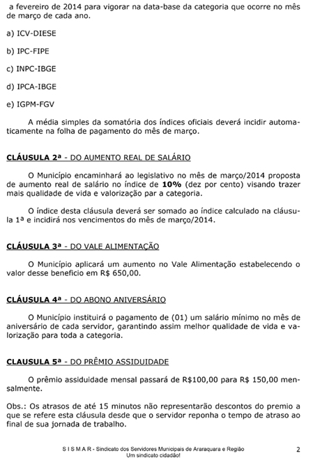 Proposta dos servidores de Gavião Peixoto para a data-base 2014