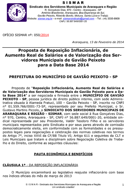 • Proposta dos servidores de Gavião Peixoto para a data-base 2014