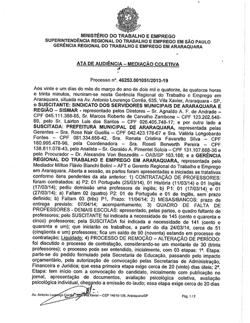 Ata GRTE - falta de professores