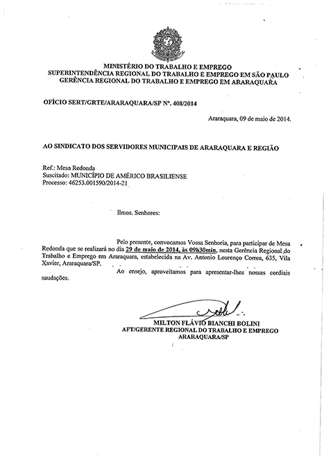 • Convocação para mesa de negociação - Américo