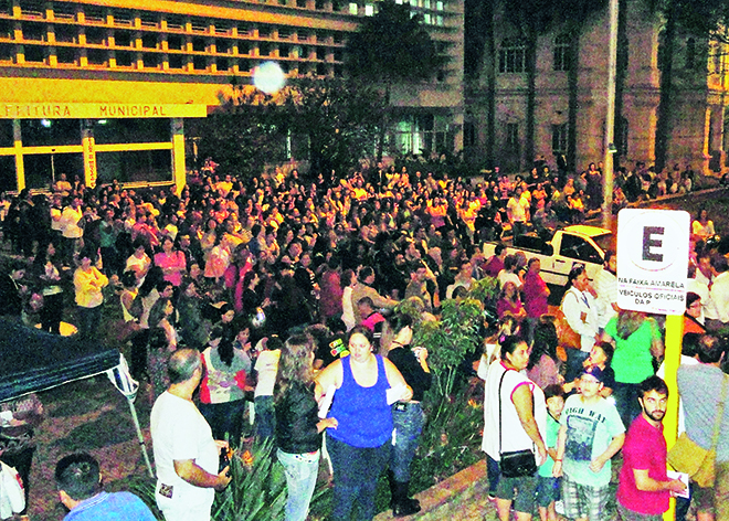 Cerca de 700 servidores reunidos em assembleia em frente à Prefeitura ontem, 15, rejeitaram a proposta de reajuste salarial de 6,3% e aumento do tíquete para R$ 350, feita pela Prefeitura. Eles decidiram entrar em estado de greve até que a Prefeitura sente para negociar as reivindicações da categoria, como aumento maior do valor do tíquete, retomada das avaliações de desempenho e melhores condições de trabalho.