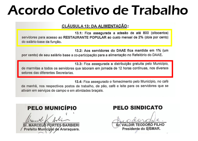 A determinação está contida no Acordo Coletivo de Trabalho, instrumento que tem força de Lei, assinado pelo Sindicato dos Servidores Municipais de Araraquara e Região (Sismar) e pela Prefeitura em 2010.