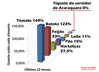 Também de acordo com o IBGE, o tomate já acumula alta de 149% nos últimos doze meses, a batata subiu 120%, a cebola, 95%.